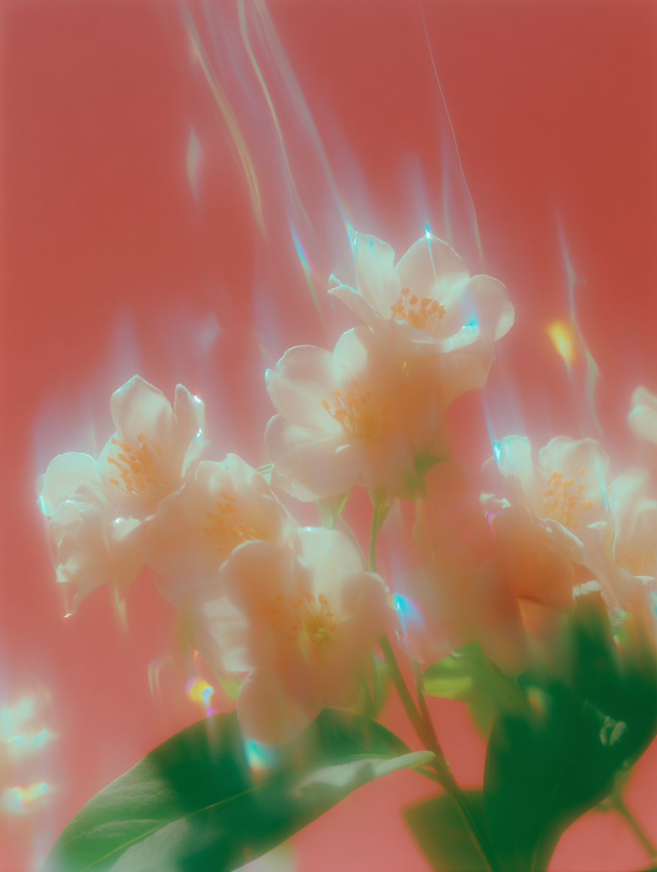 Jasmine. Cinnamon. Amber, A thousand white flowers in the background.
